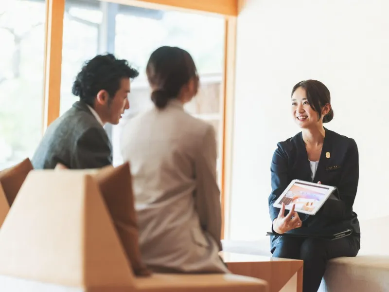 八芳園への来園不要。スマホやPCからご参加いただけるオンライン相談会を開催。経験豊富なブライダルプロデューサーがおふたりのご希望をお伺いしてご提案いたします。
