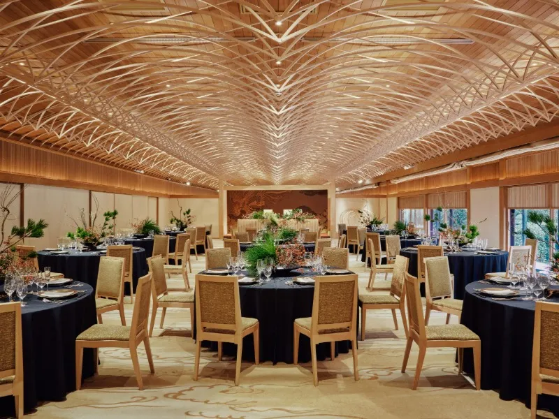25年10月 2つの披露宴会場がフルリニューアル!【生まれ変わった八芳園を体験】庭園の美しい景観と調和する2つのバンケット「KIOTO」「HAKOU」がフルリニューアル。四季を感じる上質な新空間とともに、リニューアル後の全館をご体験ください。